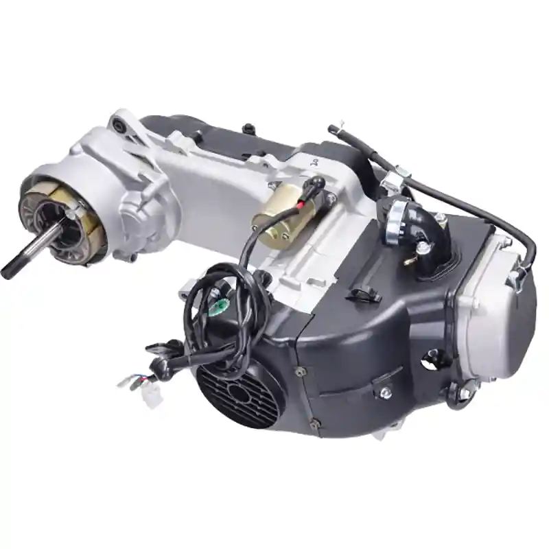 Het motorblok wordt vrijwel compleet geleverd: overbrenging, cilinder, koppeling, variateur, V-snaar , spruitstuk en ontsteking zijn al gemonteerd. Op de carburateur na is alles aanwezig. Monteren, aansluiten en rijden maar!
